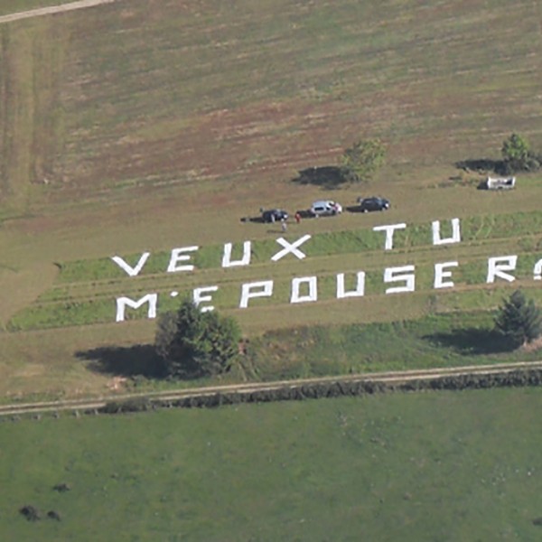 Une demande en mariage originale? Un lettrage apposé sur l’hélicoptère et une approche chez votre bien aimé/aimée ou un vol en hélicoptère en survolant votre demande au sol!