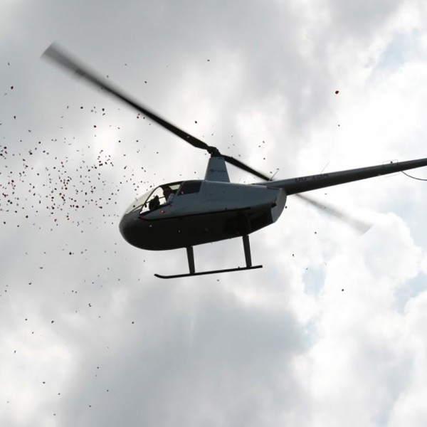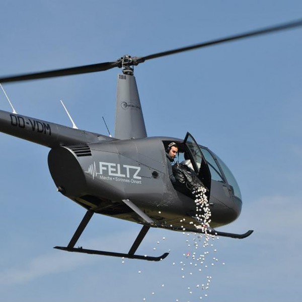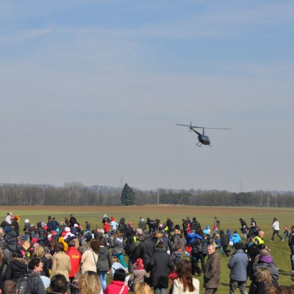 Largages d’oeufs de Pâques en coton à partir d’un hélicoptère que les enfants peuvent ensuite échanger contre de véritables oeufs en chocolat!