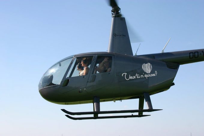 Pour votre mariage, nous pouvons vous transporter à bord de notre Robinson R44 soit au départ de notre base de Namur soit d’un autre terrain qui devra être approuvé par nos soins d’une part et d’autre part, avoir obtenu l’accord du propriétaire.